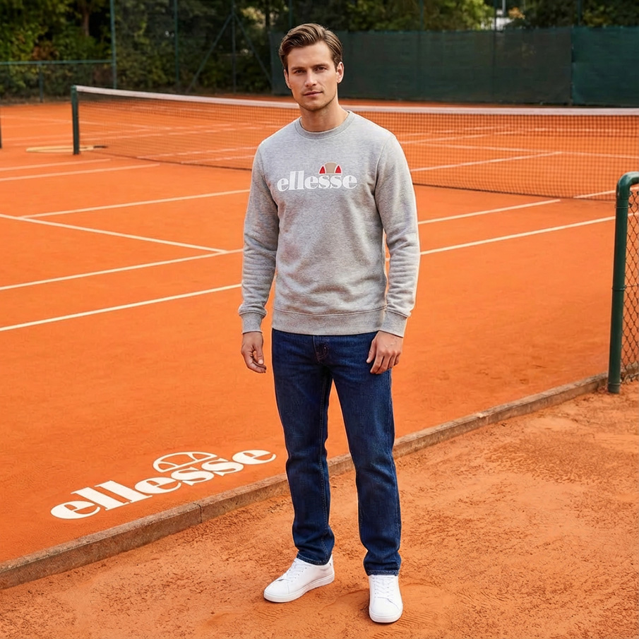 ellesse Kanya Crew Hombre Sudadera SOP24044-Gris claro jaspeado