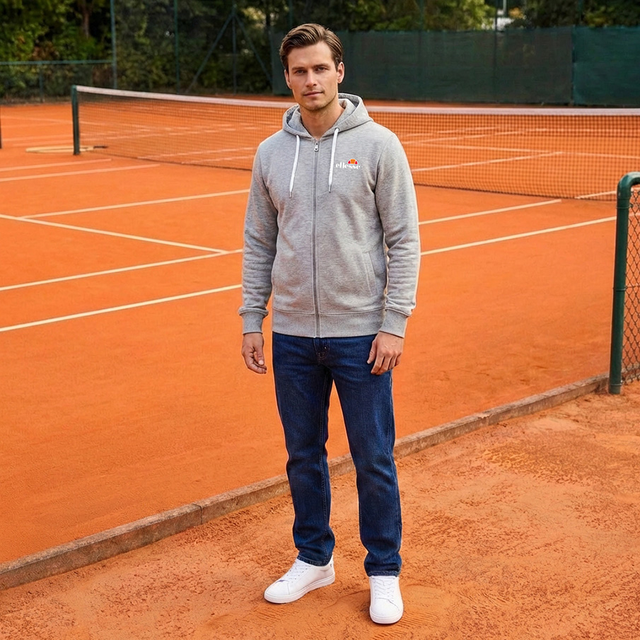 ellesse Klemerio Full Zip Hombre Sudadera con cremallera y capucha SOP23857-Gris claro jaspeado